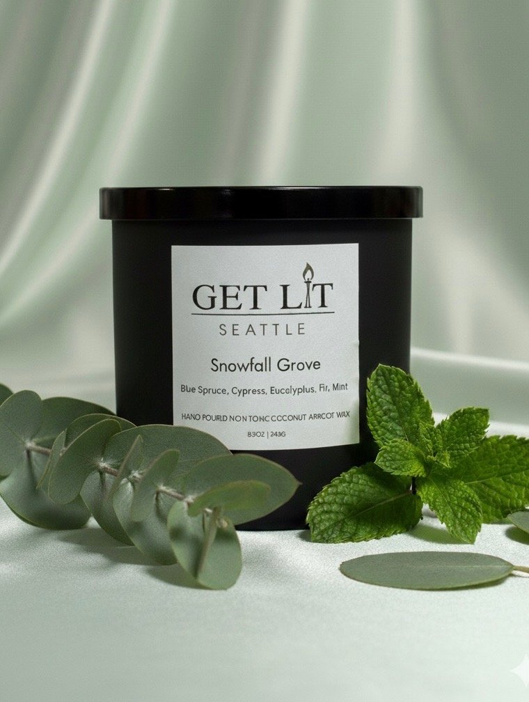 Crisp, serene, and effortlessly wintery. Snowfall Grove feels like stepping into a quiet forest after fresh snowfall. Cool eucalyptus and invigorating mint create the first breath of icy air, while blue spruce, cypress, and fir add a deep evergreen richness that wraps the room in pure, earthy calm.